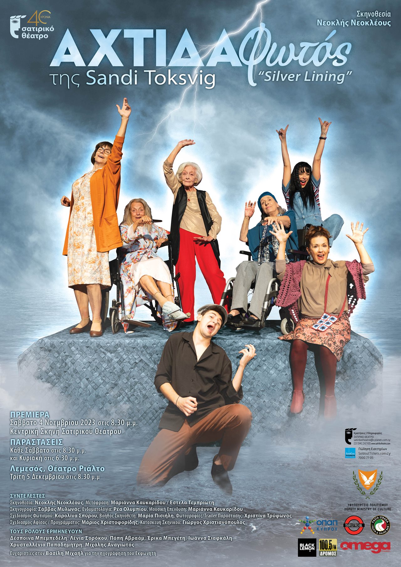 Το Σατιρικό θέατρο συμπληρώνει φέτος 40 χρόνια δημιουργικής πορείας και καλλιτεχνικής προσφοράς στα πολιτιστικά δρώμενα της Κύπρου και ανεβάζει στην Κεντρική Σκηνή το συγκινητικό έργο «Αχτίδα Φωτός» («Silver Lining»), της Σάντι Τόκσβικ. Την σκηνοθεσία του έργου υπογράφει ο Νεοκλής Νεοκλέους και πρωταγωνιστούν οι κυρίες Δέσποινα Μπεμπεδέλη, Λένια Σορόκου, Πόπη Αβραάμ, Έρικα Μπεγέτη και Ιωάννα Σιαφκάλη.