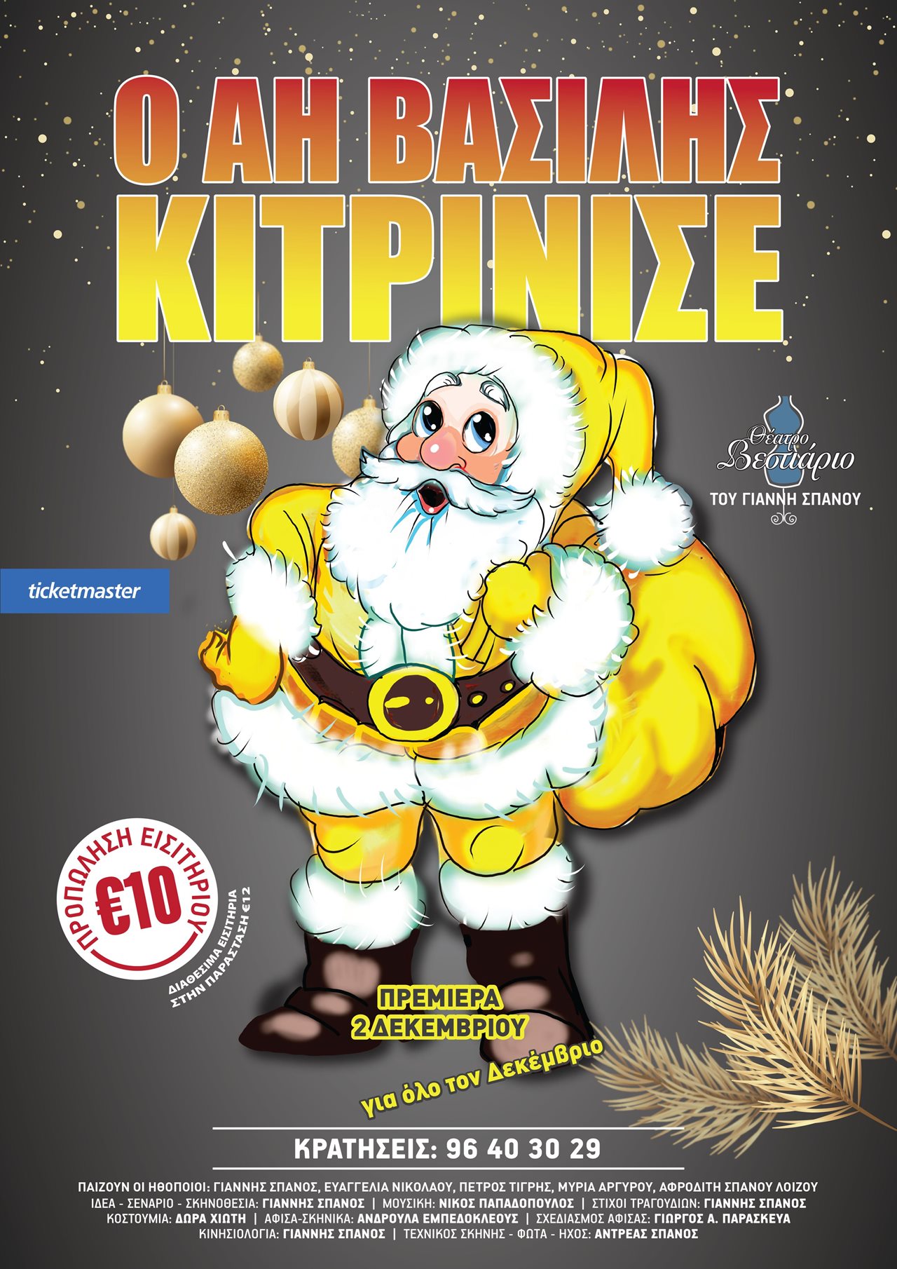 0 Άη Βασίλης λοιπόν κιτρίνισε ναι - ναι και είναι η νέα μας παραγωγή, το νέο παιδικό θεατρικό Χριστουγεννιάτικο μας έργο ,από την παιδική σκηνή μας ΘΕΑΤΡΟ ΒΕΣΤΙΑΡΙΟ και έρχεται να μαγέψει και να διασκεδάσει μικρούς και μεγάλους και να τους παρασύρει σε νέες περιπέτειες.