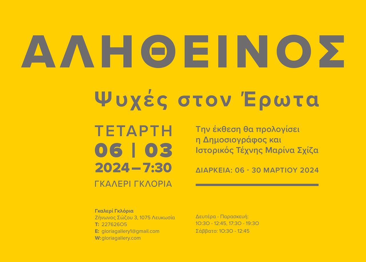 Γκαλερί Γκλόρια, Ζήνωνος Σώζου 3, Λευκωσία 1075. Τηλ. 22762605.