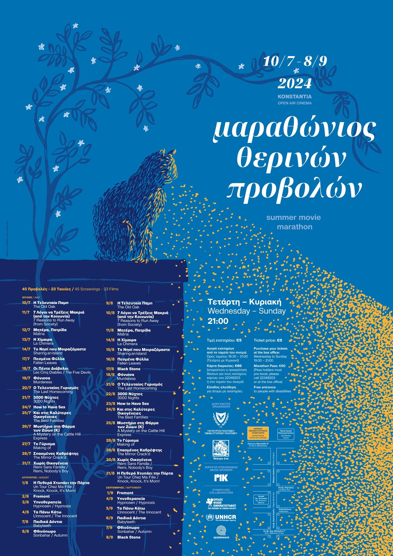 Τιμή εισιτηρίου: €5. Αγορά εισιτηρίων από το ταμείο του σινεμά.