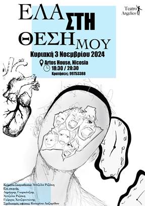 Το Teatro Angelico ανακοινώνει την επόμενη παραγωγή του με τίτλο “Έλα στη θέση μου” σε κείμενο και σκηνοθεσία Άντζελας Ριζάκη. Η πρεμιέρα του έργου έχει προγραμματιστεί για την Κυριακή 3 Νοεμβρίου 2024 στις 18:30 & 20:30, στο Artos House, στους Άγιους Ομολογητές.