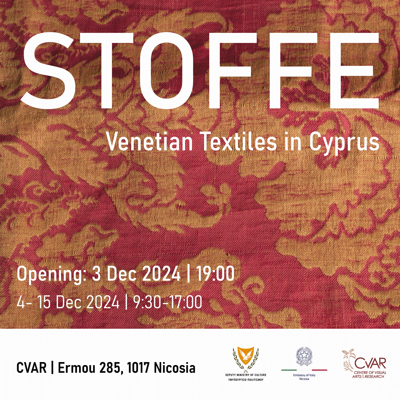 The Centre of Visual Arts and Research (CVAR) and the Embassy of Italy in Cyprus are delighted to announce the opening of STOFFE, an exhibition exploring the rich legacy of Venetian textiles and their enduring influence on the Cypriot society and its costumes.