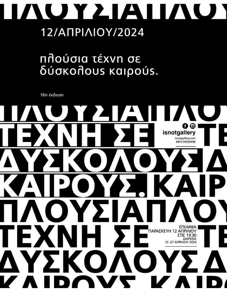 Η Isnotgallery contemporary με ιδιαίτερη χαρά παρουσιάζει την ομαδική έκθεση σύγχρονης τέχνης «Πλούσια τέχνη σε δύσκολους καιρούς» την