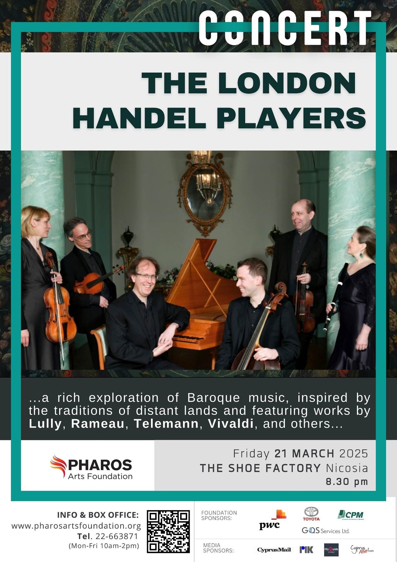 Για 25 χρόνια, οι London Handel Players καταπλήσσουν το κοινό ανά το παγκόσμιο με τις συναυλίες και τις ηχογραφήσεις τους, και τις απαράμιλλες ερμηνείες τους σε σημαντικές αίθουσες και φεστιβάλ μουσικής όπως το Γουίγκμορ Χολ, το Κάρνεγκι Χολ και τα Φεστιβάλ Χέντελ στο Γκέτινγκεν και στο Χάλε. Το Ίδρυμα Τεχνών Φάρος παρουσιάζει αυτό το συναρπαστικό σύνολο μουσικής περιόδου για πρώτη φορά στην Κύπρο, σε μια συναυλία που θα πραγματοποιηθεί την Παρασκευή 21 Μαρτίου 2025, στο The Shoe Factory στη Λευκωσία / 8:30μμ.
