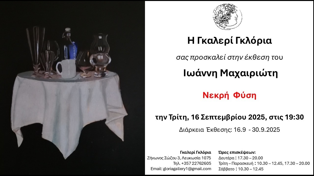 th, 2025 at 19:30 at Gloria Gallery, Zenonos Sozou 3, Nicosia.