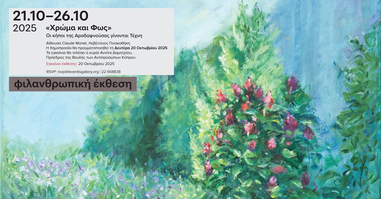 Ο Αντικαρκινικός Σύνδεσμος Κύπρου και η Λεβέντειος Πινακοθήκη παρουσιάζουν την έκθεση «Χρώμα και Φως: Οι κήποι της Αροδαφνούσας γίνονται Τέχνη», μια πρωτοβουλία που γεφυρώνει τη δημιουργικότητα με την προσφορά.